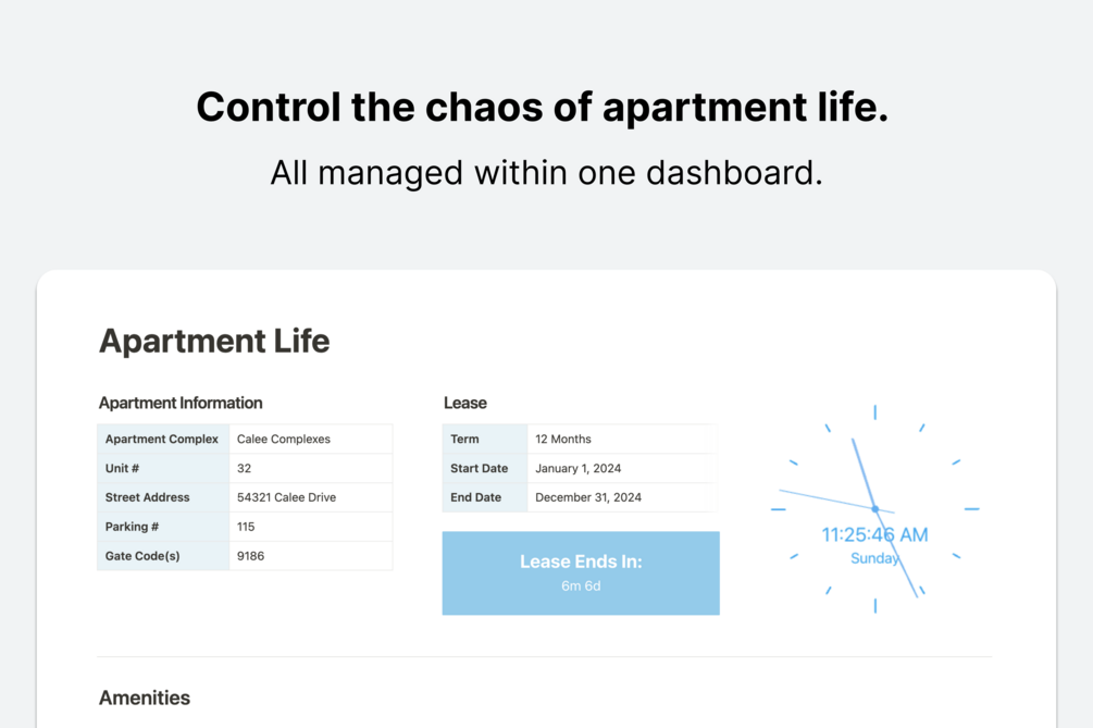 A Notion template that effortlessly manages apartment chaos: track your lease, amenities, utilities, rent, and even share tasks with roommates.