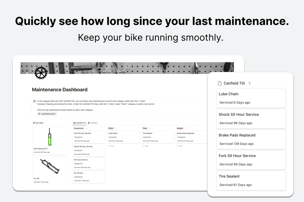 Whether you have 1 bike or 10, keep track of your bikes and their components in one place. -