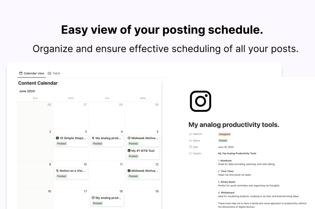 The Social Media Planner. A visual system to plan, schedule, and manage your social media posts. The ultimate tool for every social media manager.