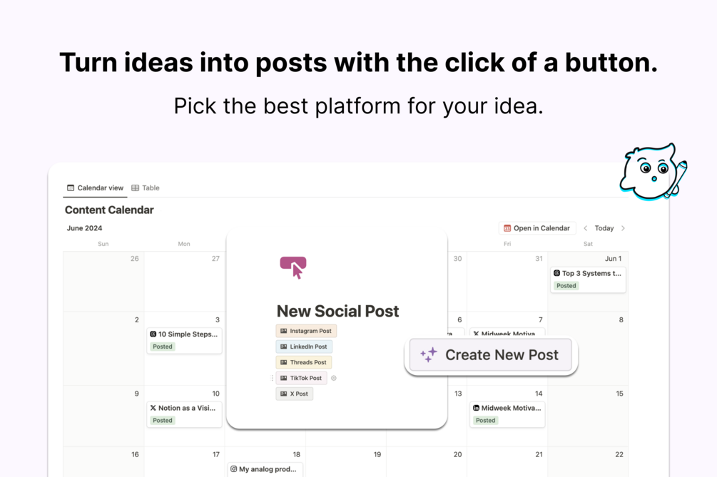 Easily start crafting a new social post with a single click. -